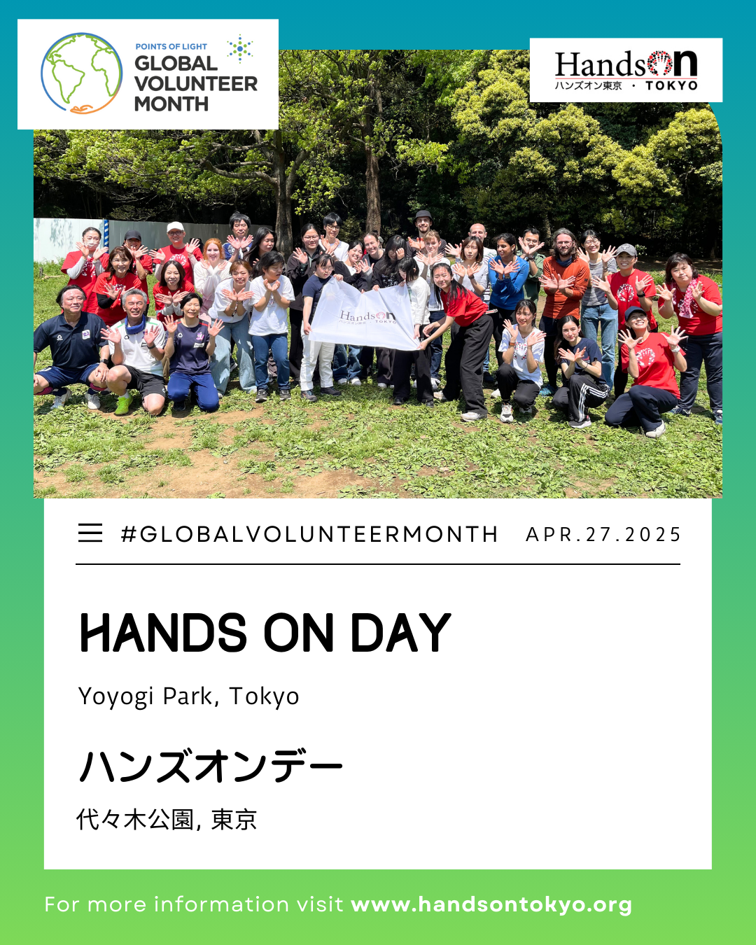 ボランティアの皆さん一人ひとりの力が、地域社会をより強くし、よりつながりの ある世界へと変えていきます。ハンズオン東京は「グローバル・ボランティア月間」を通じて、皆さんが変化を生み出す一歩を応援します。