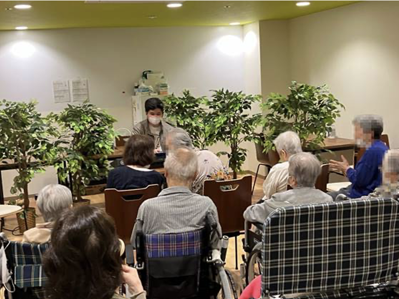 シニアデイサービスで高齢者の皆さんと一緒に歌を歌ったり、音楽を聞いたりして楽しい時間を過ごす活動です。